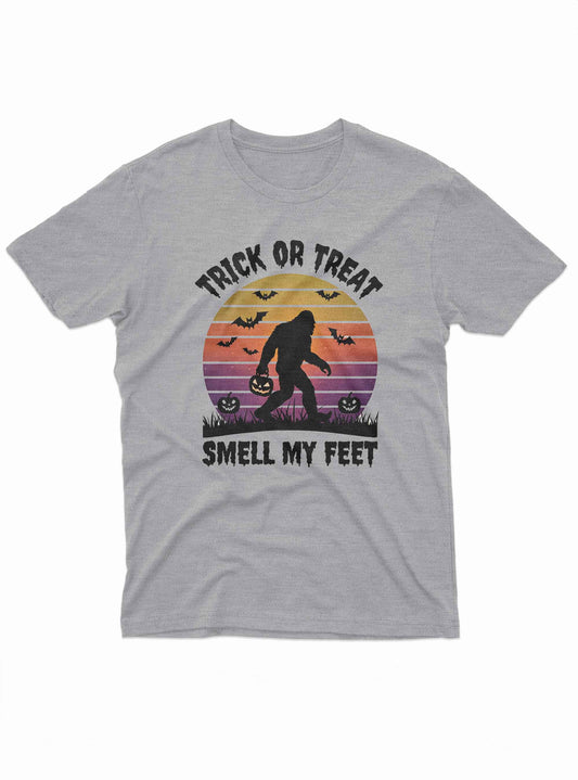 Regular price $28.99Regular priceUnit price / perGet spooky, silly, and stylish with our Bigfoot “Trick or Treat, Smell My Feet” custom t shirt! Perfect for Halloween lovers and fans of funny t shirts, this design features a vintage-inspired sunset backdrop, flying bats, and the legendary Sasquatch carrying a pumpkin. Printed with high-quality custom inks and professional t shirt printing, this graphic tee blends the comfort of customized tee shirts with the humor of classic Halloween fun. Whether you like tight shirt fits or relaxed vintage t shirts, this piece makes the ultimate seasonal staple. Add it to your lineup of custom tee shirts and graphic tees today!