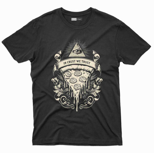 Regular price $28.99Regular priceUnit price / per$32.99Sale price $28.99Join the secret society of pizza lovers with our In Crust We Trust T Shirt — a hilarious mashup of humor and mystery. Featuring a bold all-seeing eye design above a melting slice of pizza, this custom t shirt perfectly balances vintage style and modern wit. Printed on soft cotton using premium t shirt printing, this funny t shirt is a must-have for foodies, pizza addicts, and anyone who believes in the power of the perfect crust. Whether you’re lounging, gaming, or grabbing a slice, this graphic tee is your new statement piece for ultimate comfort and cool style.