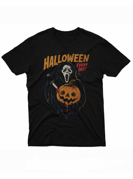Regular price $28.99Regular priceUnit price / perCelebrate spooky season all year round with our "Halloween Every Day" horror t-shirt! Featuring a ghoulish Ghostface-like figure stabbing a bleeding jack-o’-lantern, this bold and graphic design is perfect for horror fans who live for thrills, chills, and Halloween vibes 365 days a year. Made from soft, breathable cotton, this black tee is perfect for costume parties, haunted houses, or casual fall wear.